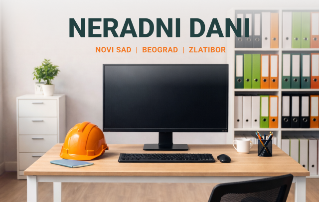 Povodom obeležavanja praznika rada, naši prodajni timovi u Beogradu, Novom Sadu i na Zlatiboru neće raditi u periodu od četvrtka 1. maja, do nedelje 4. maja 2025. godine. Od ponedeljka...